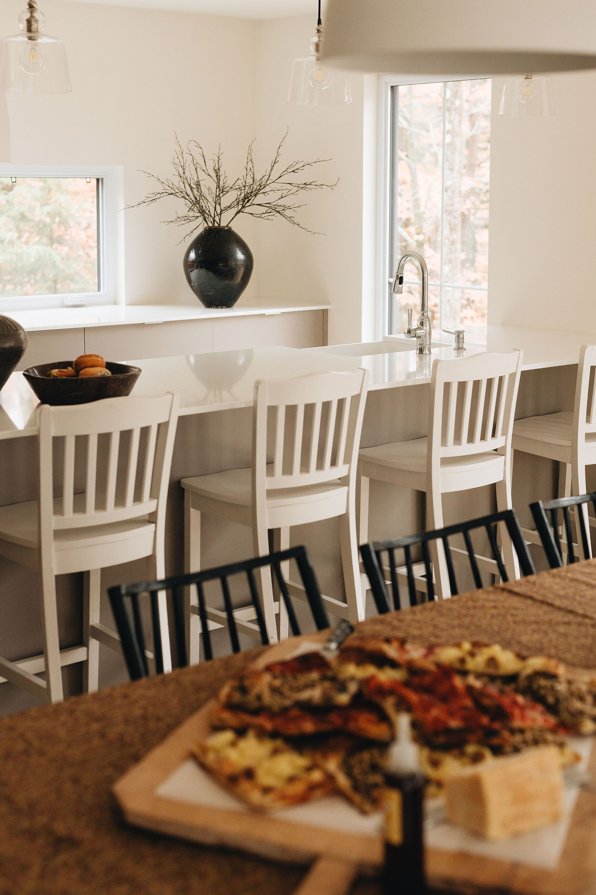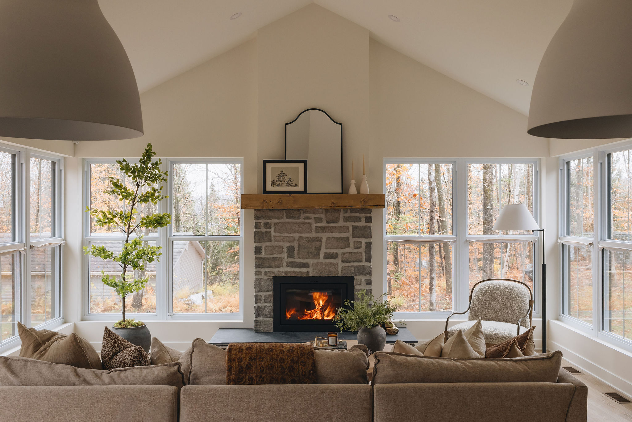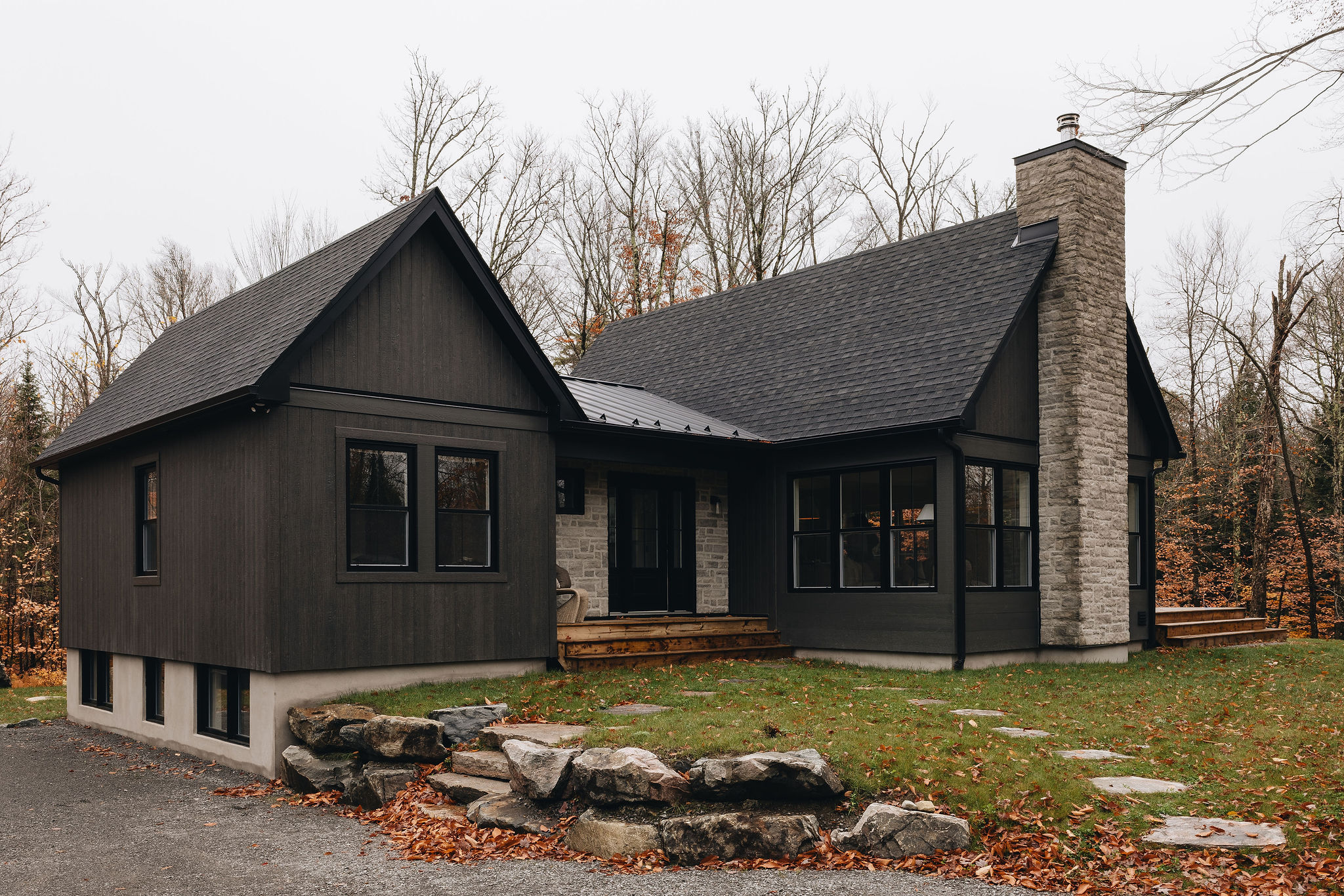 Signée par Pierre Davidson, architecte, et Hyperia Design, cette propriété familiale a été pensée pour les rassemblements et la convivialité. Conçue pour accueillir confortablement parents et amis, elle maximise l’espace sans compromis : six chambres et quatre salles de bain réparties sur 2 200 pc, dans une configuration ouverte qui invite à se retrouver autour d’un bon repas ou d’un feu qui crépite.
