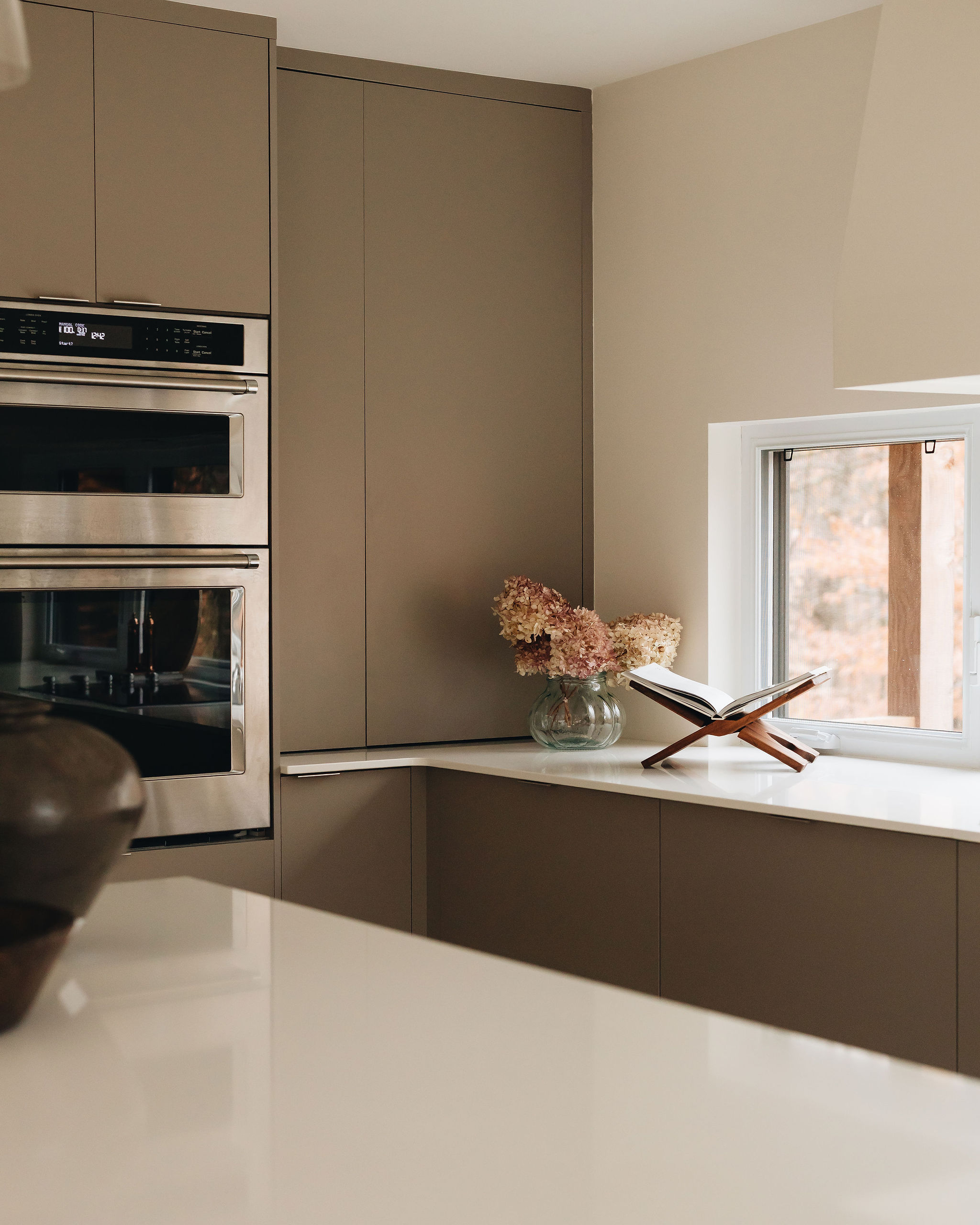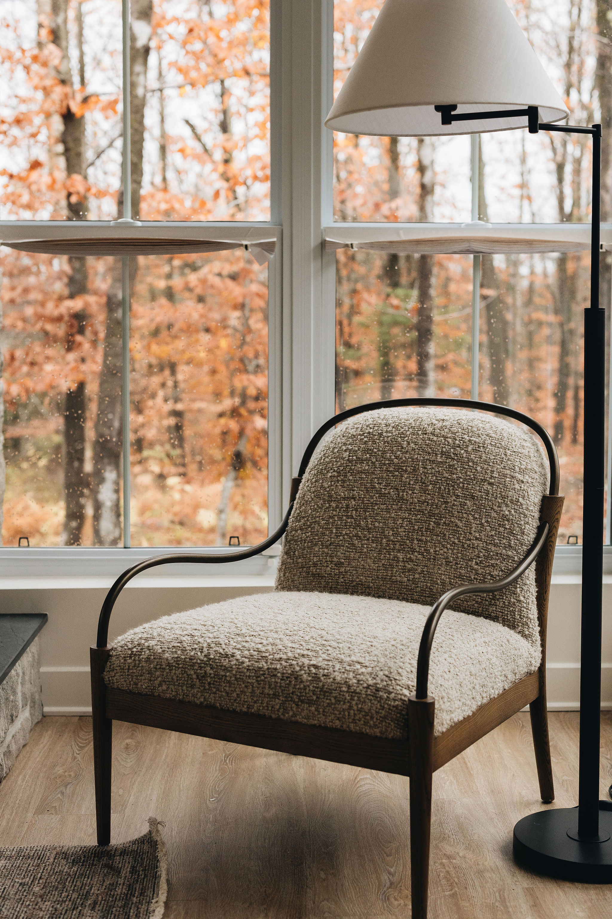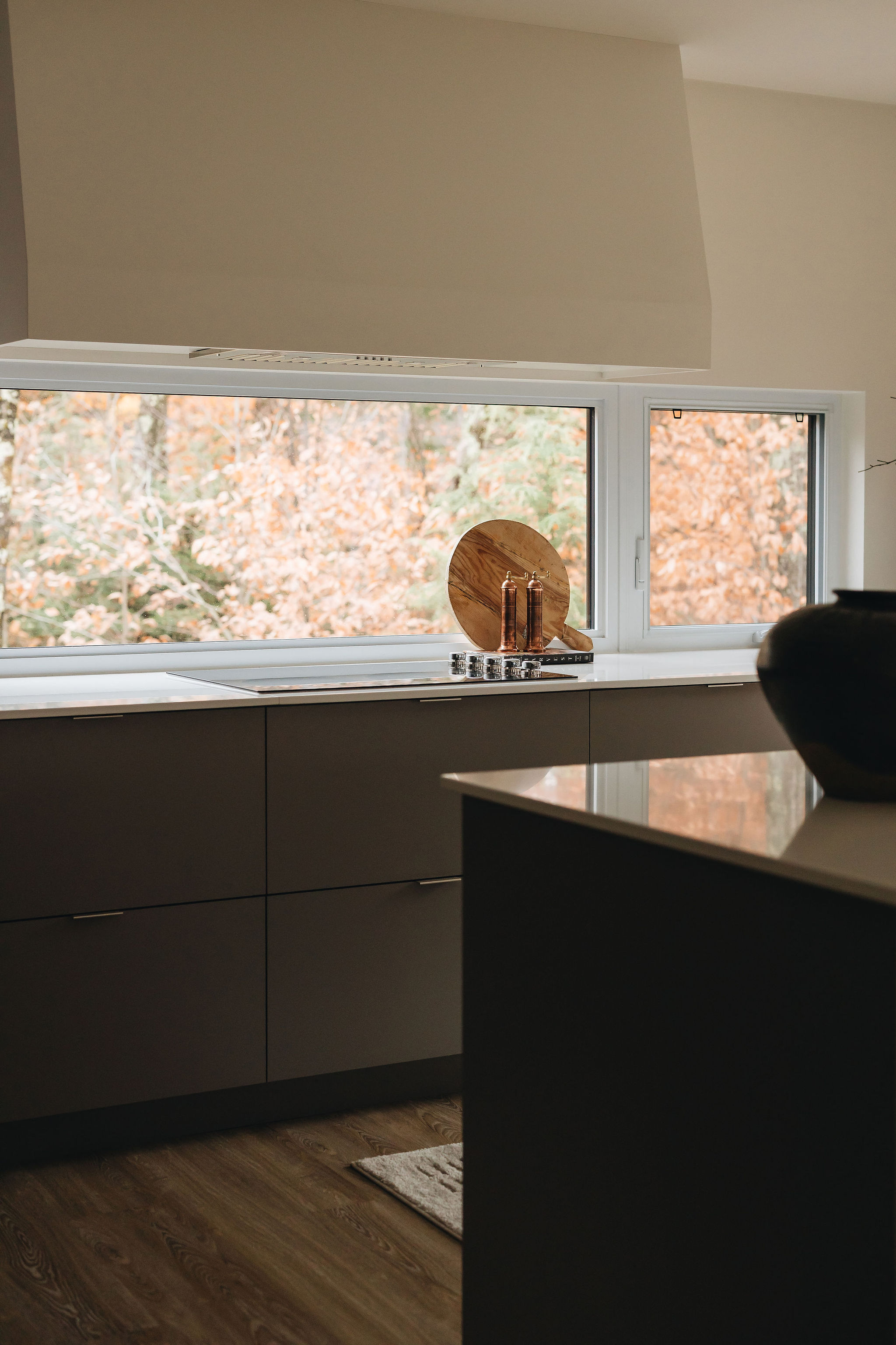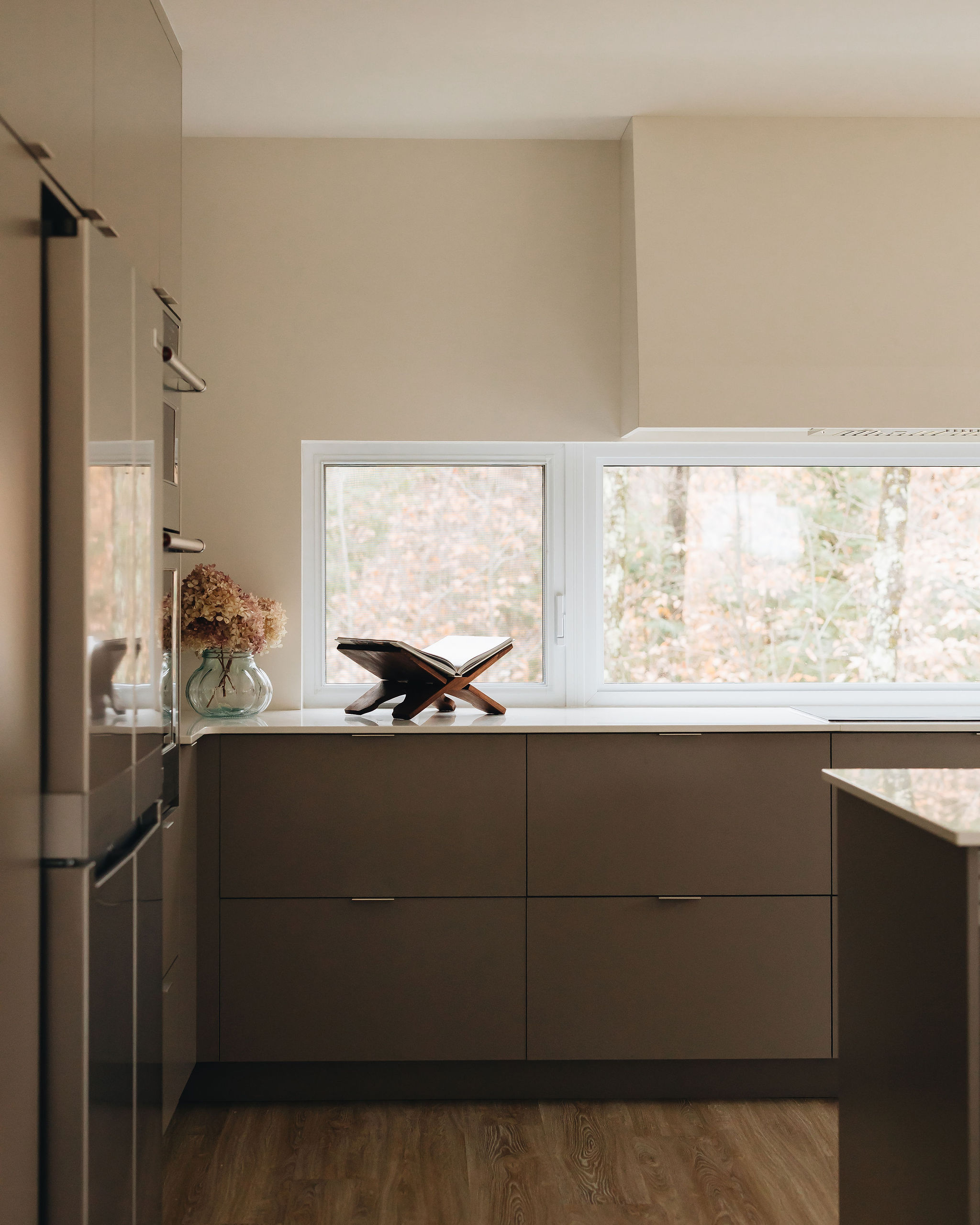 Signée par Pierre Davidson, architecte, et Hyperia Design, cette propriété familiale a été pensée pour les rassemblements et la convivialité. Conçue pour accueillir confortablement parents et amis, elle maximise l’espace sans compromis : six chambres et quatre salles de bain réparties sur 2 200 pc, dans une configuration ouverte qui invite à se retrouver autour d’un bon repas ou d’un feu qui crépite.